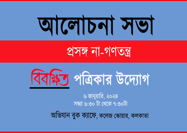 ‘বিবক্ষিত’ পত্রিকার উদ্যোগে আজকের গণতন্ত্র প্রসঙ্গে একটি সুগভীর ও বহুমাত্রিক আলোচনা। অংশ নেন আশীষ লাহিড়ী, শ্রুত্যানন্দ ডাকুয়া ও অনিন্দ্য ভট্টাচার্য। সঞ্চালনা করেন সোমেন সেনগুপ্ত।